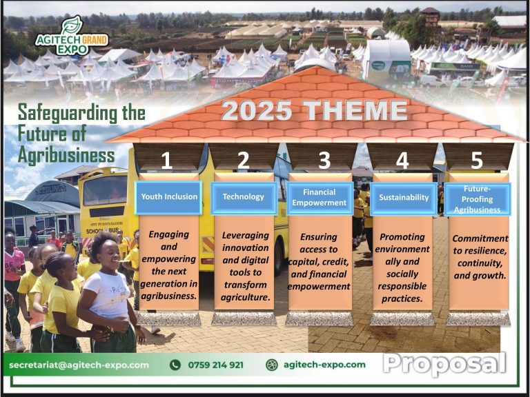 Agitech Grand Expo, is an annual event held at the Agitech Seedlings Grounds in Mutithi, Mwea West Sub-County, Kirinyaga County. Our main goal is to uplift rural communities, improve food security, and promote food safety across Kenya in line with the 2025 theme, “Safeguarding the Future of Agribusiness through Youth Inclusion, Technology, Financial Empowerment, and Sustainability,“