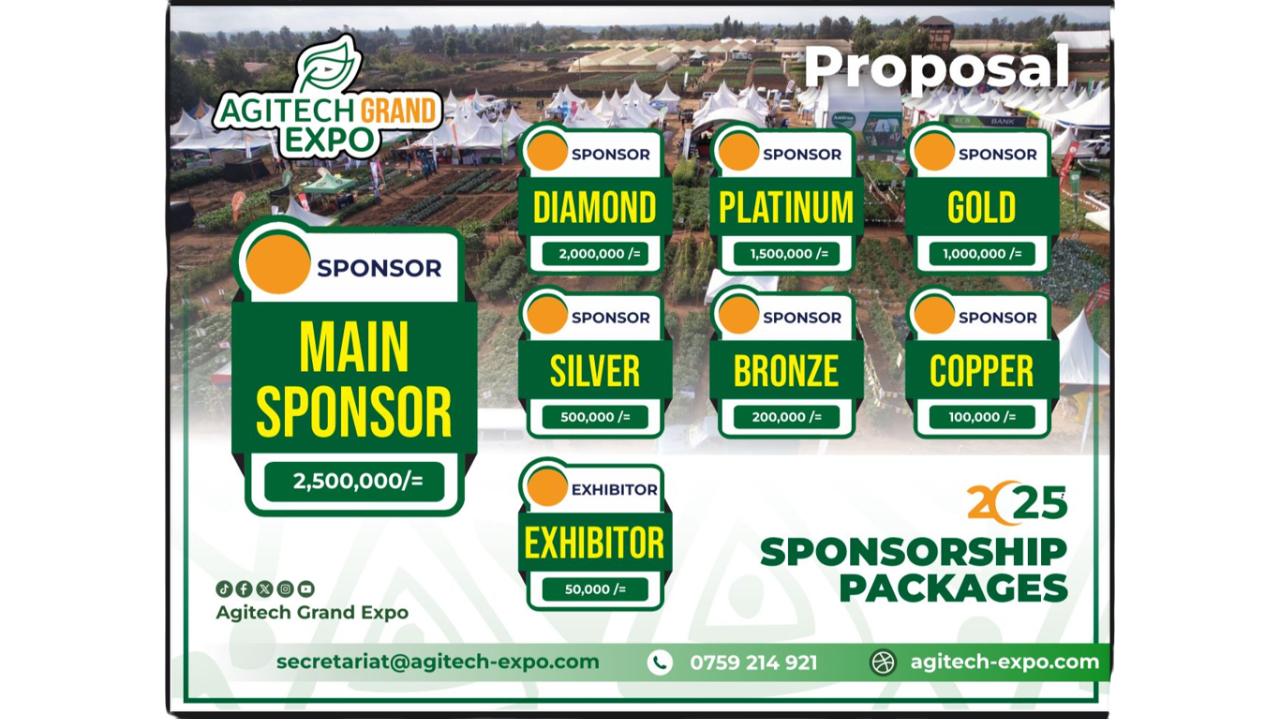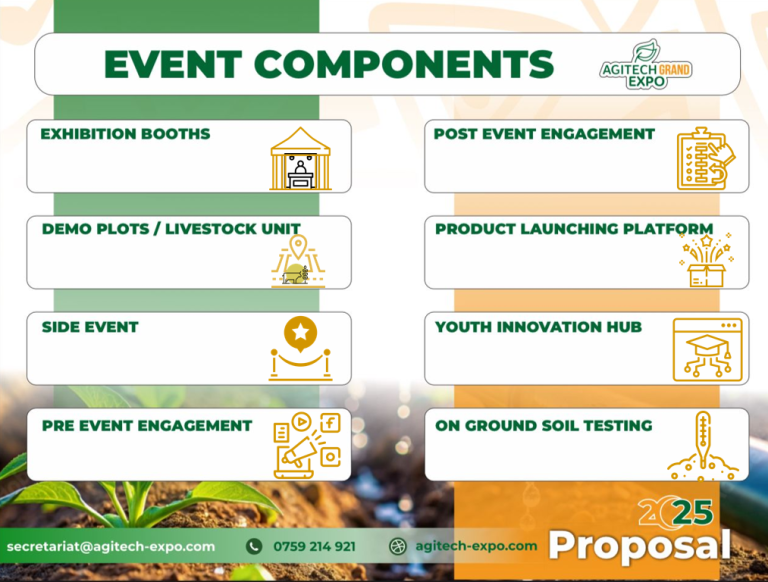 Agitech Grand Expo, is an annual event held at the Agitech Seedlings Grounds in Mutithi, Mwea West Sub-County, Kirinyaga County. Our main goal is to uplift rural communities, improve food security, and promote food safety across Kenya in line with the 2025 theme, “Safeguarding the Future of Agribusiness through Youth Inclusion, Technology, Financial Empowerment, and Sustainability,“